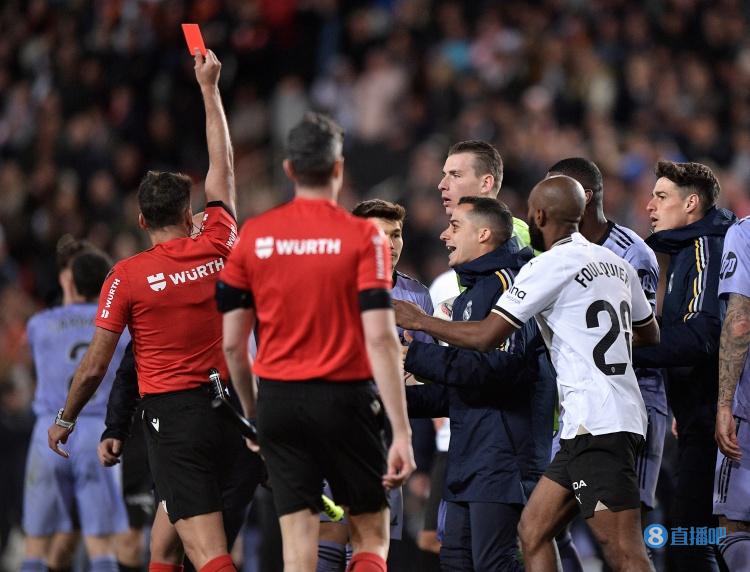 在2024年3月,皇馬2-2戰平瓦倫西亞最后時刻,貝林厄姆破門,但主裁提前吹響終場哨。皇馬集體抗議,貝林厄姆對裁判出言不遜,被主裁判希爾-曼薩諾直紅罰下。