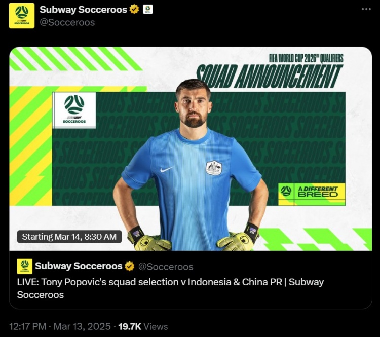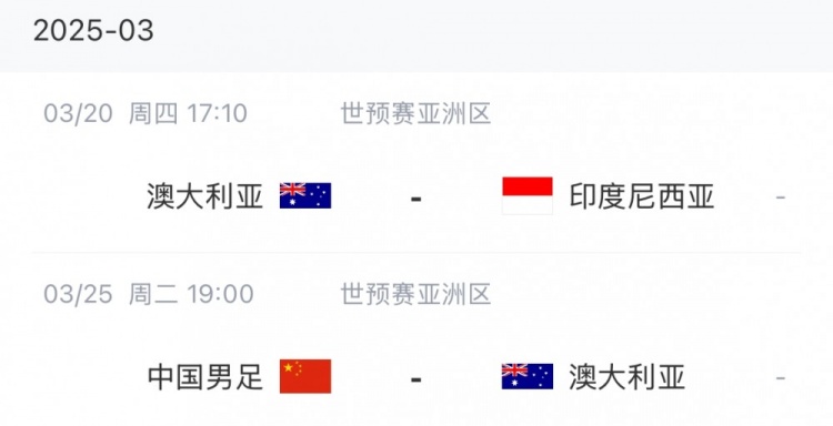 本月世預賽,澳大利亞將主場戰印尼,客場對陣中國隊。