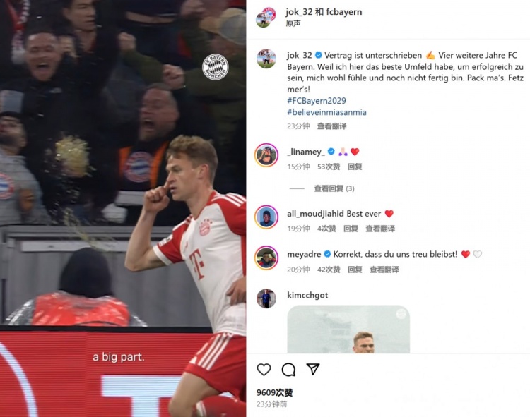 3月14日訊 拜仁已經官宣和基米希續約至2029年,基米希也本人也通過社媒紀念。基米希轉發了拜仁的官宣視頻,并配文:“合同已簽署??我將在拜仁再戰4年。因為這里有我取得成功的最佳環境,我在這里過得很舒服,并且還有任務尚未完成。讓我們開始為之努力吧!”30歲的基米希當前德轉身價5000萬歐元,本賽季為拜仁39場貢獻1球9助攻。 本文標簽: 足球 德甲 拜仁慕尼黑