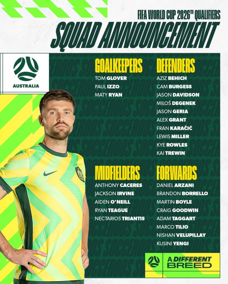 幾位熟悉的老面孔也回來了,2015年亞洲杯冠軍成員賈森-戴維森(帕納辛納科斯)和2022年世界杯參賽球員弗蘭-卡拉契奇(薩格勒布火車頭)都被選中。