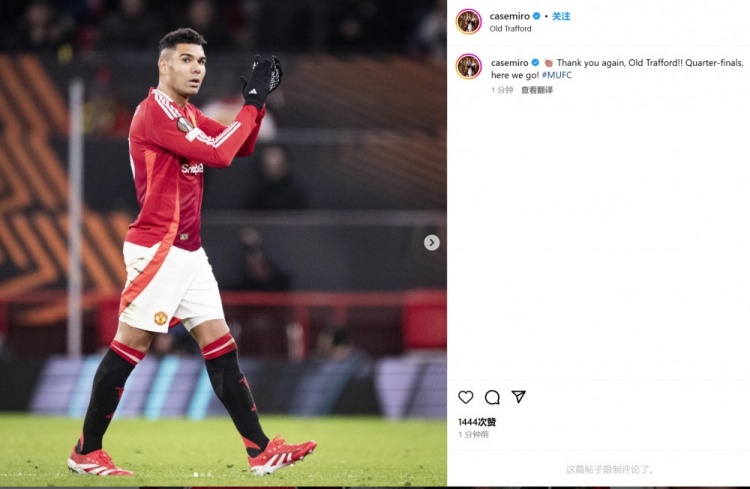 3月14日訊 曼聯在歐聯杯16強戰次回合4-1大勝皇家社會,卡塞米羅表現搶眼。他在本場比賽11次對抗、6次成功,并且貢獻了3次搶斷、2次攔截和4次成功長傳,也在被換下時獲得了主場球迷的如潮掌聲。卡塞米羅也在被換下場時回報以掌聲,賽后還通過社媒曬出照片并配文:“再次感謝,老特拉福德?。?!歐聯杯八強戰,我們來了!” 本文標簽: 足球 英超 曼聯 西甲 皇家社會 歐聯杯