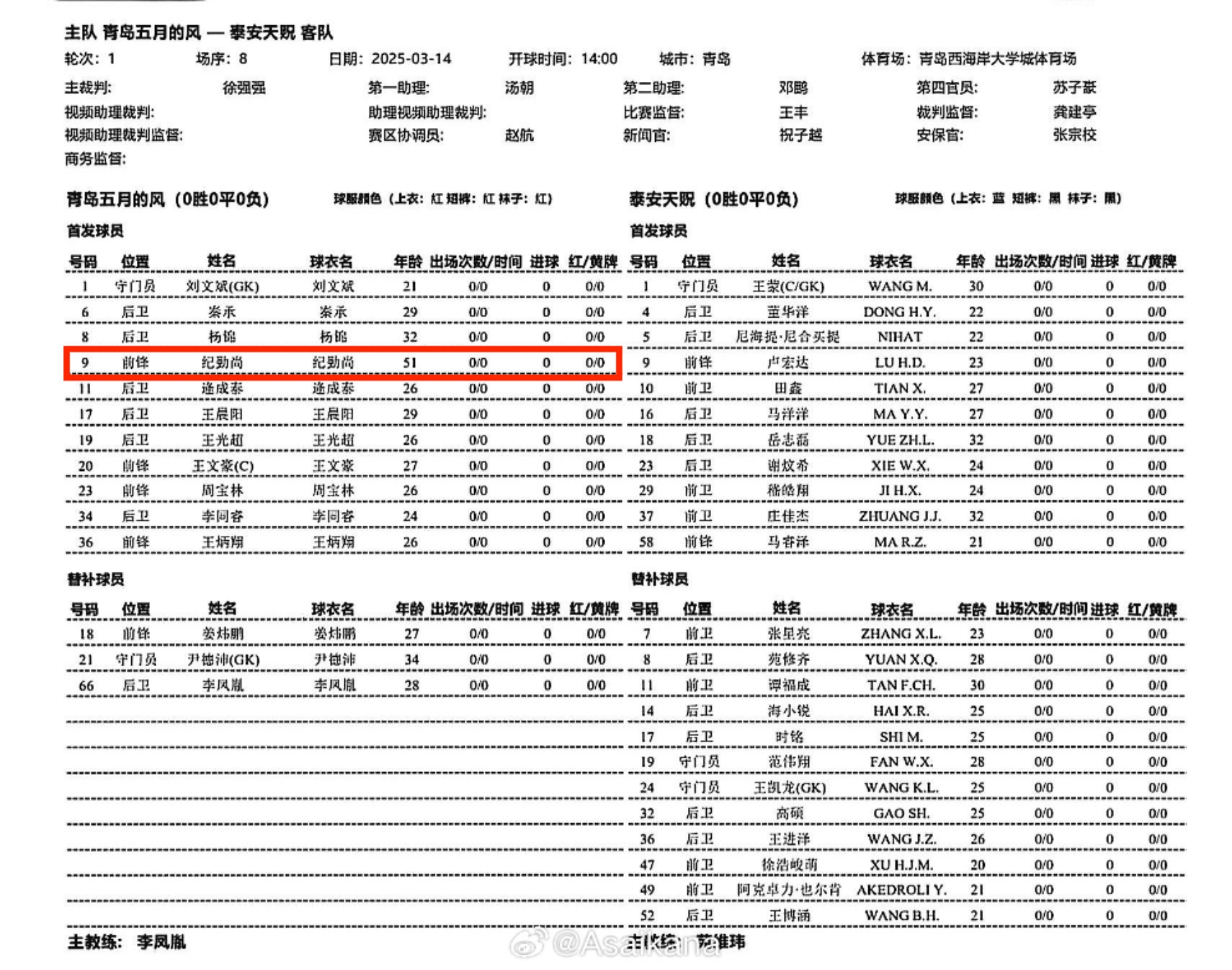 03月14日訊 北京時(shí)間今日14:00,足協(xié)杯正賽第一輪比賽將打響。中冠球隊(duì)青島五月的風(fēng)將對(duì)陣中乙球隊(duì)泰安天貺。根據(jù)首發(fā)名單,青島五月的風(fēng)投資人、51歲的紀(jì)勤尚將先發(fā)出戰(zhàn),擔(dān)任前鋒。 ??? 本文標(biāo)簽: 足球 中超 中國(guó)足球 中甲 中乙 泰安天貺