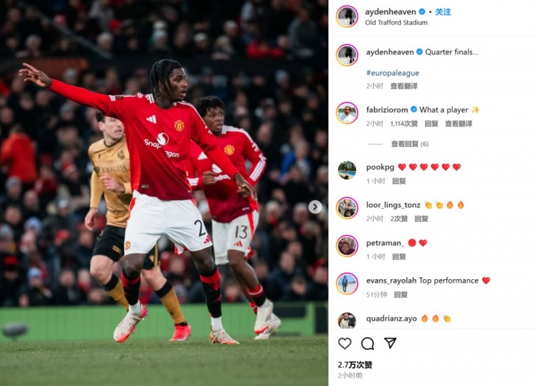 3月14日訊 曼聯在本輪歐聯杯4-1大勝皇家社會,18歲中衛海文首發表現出色。數據統計顯示,這也是他加盟曼聯后首次首發,本場貢獻4解圍、2攔截、3搶斷并且4次地面對抗均成功。海文也在賽后通過社媒曬出自己的比賽照,并配文:“晉級八強戰…#歐聯杯#”。名記羅馬諾也現身評論區夸贊:“多么出色的球員。” 本文標簽: 足球 英超 曼聯 西甲 皇家社會 歐聯杯