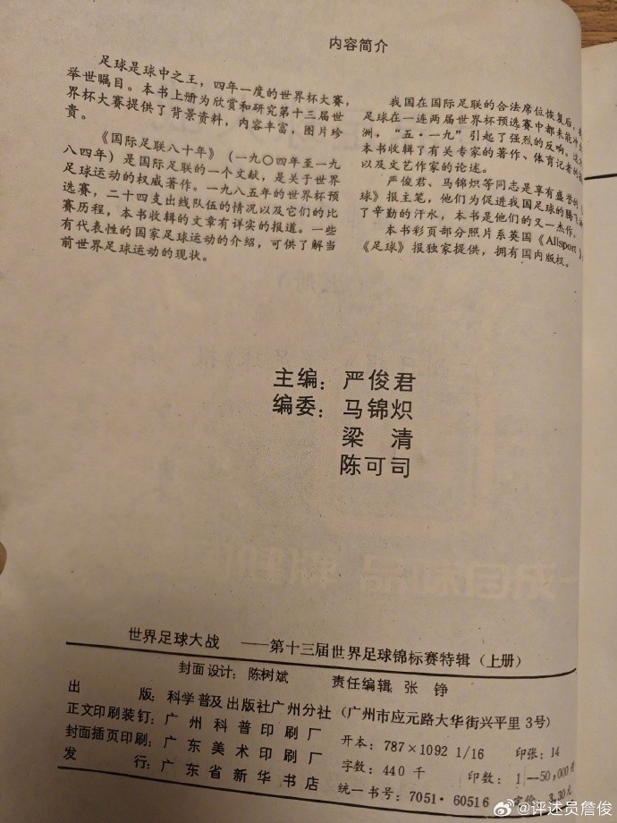 父親說,這些小薄紙片挺“解渴”的。那里肯定也有嚴俊君老總的“耕耘之作”。我開始工作后,和“足球報”很多同行成為好友,可惜那時嚴總已經退居二線,無緣相見。今晚得知他老人家駕鶴西去,心中惆悵。謝謝您!曾經帶我們這些球迷去“看世界”……