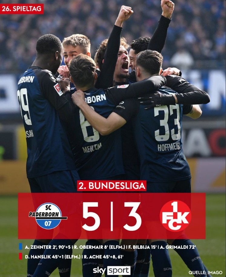 3月15日訊 在德乙第26輪一場強強較量中,帕德博恩5-3擊敗凱澤斯勞滕。本場比賽帕德博恩在開場前15分鐘就取得3-0的領先,但是凱澤斯勞滕頑強的在61分鐘將比分扳為3-3平,不過帕德博恩在第72分鐘和補時階段又連入兩球,最終拿下比賽勝利。本輪過后帕德博恩反超凱澤斯勞滕升至第二位,距榜首漢堡3分。 本文標簽: 足球 德甲
