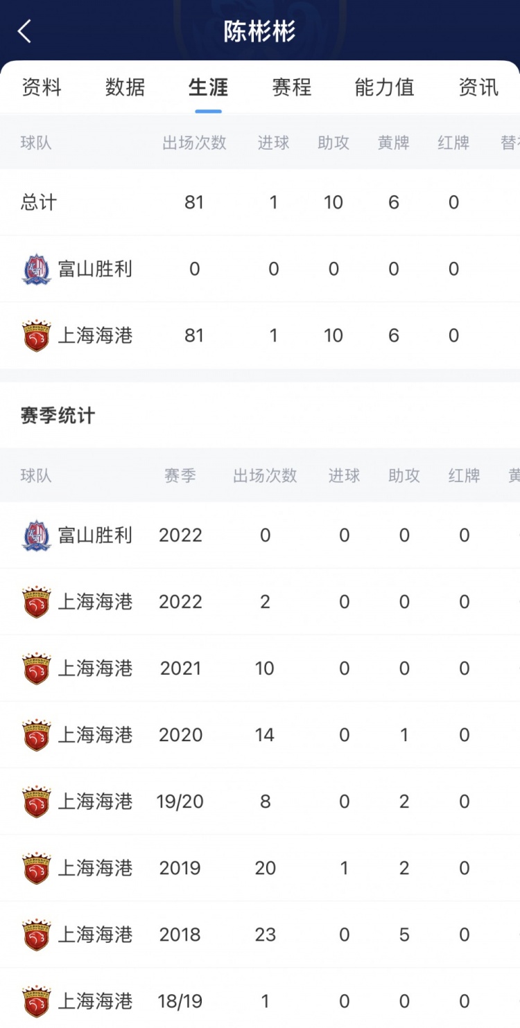 陳彬彬出生于1998年,今年6月將滿27歲,場上司職左前衛和左翼衛。此前他在上海海港(上港)效力多年,也曾到日本J3聯賽留洋。上賽季結束后,陳彬彬離開海港,隨后加盟南通支云。