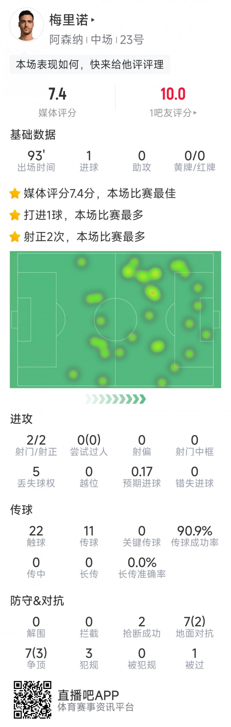 3月16日訊 在本輪英超阿森納1-0擊敗切爾西的比賽中,梅里諾打進(jìn)唯一進(jìn)球。以下為他在本場(chǎng)數(shù)據(jù):1粒進(jìn)球2次射門均射正22次觸球傳球成功率90.9%2次搶斷14次對(duì)抗5次成功評(píng)分7.4分 本文標(biāo)簽: 足球 英超 阿森納