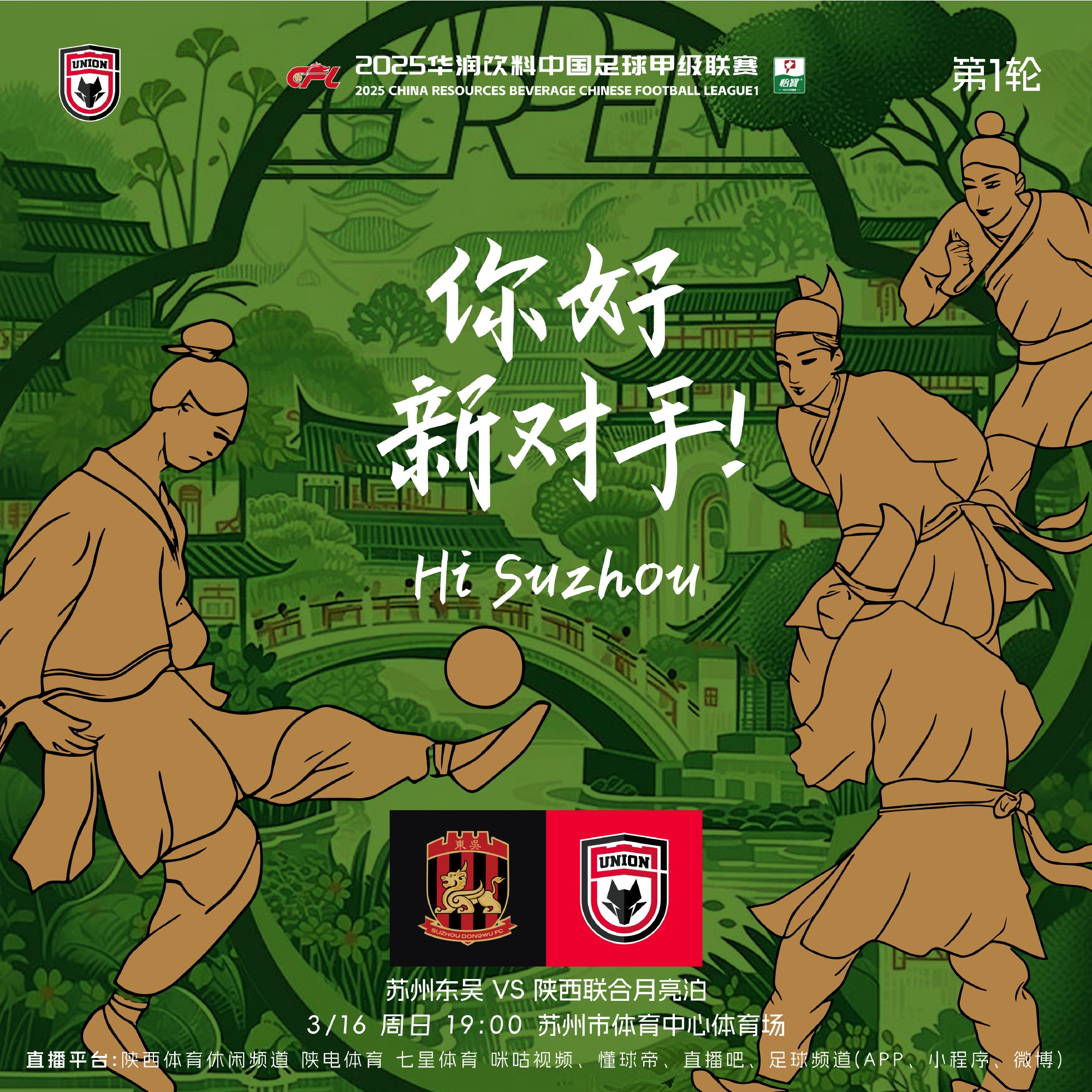 03月16日訊 北京時間19點,2025賽季中甲首輪,蘇州東吳主場迎戰陜西聯合,賽前官方公布兩隊首發。