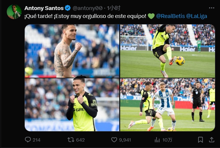 03月17日訊 在剛結束的西甲第28輪,皇家貝蒂斯客場3-2逆轉萊加內斯的比賽最后時刻,安東尼在比賽最后時刻策動球隊進攻,助貝蒂斯絕殺對手。安東尼在社媒發文:“太棒了!我為球隊感到自豪。”本場比賽第82分鐘,巴坎布直塞,安東尼高速狂飆前插!殺入禁區橫傳,伊斯科踢空,助后點的庫喬抽射破門。回放如下: 本文標簽: 足球 西甲 皇家貝蒂斯