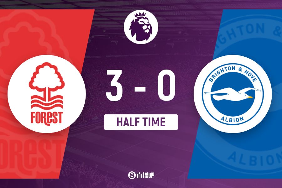 上半場比賽結(jié)束,諾丁漢森林3-0布萊頓。