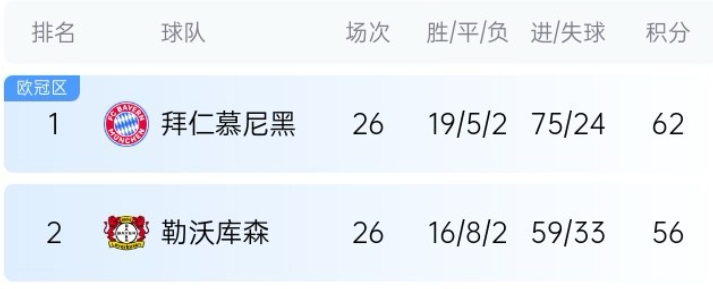 進球網還分析道:德甲僅剩8輪的情況下,拜仁仍手握主動權,勒沃庫森想要后來居上,必須指望拜仁出現重大失誤。國際比賽日后,拜仁將迎戰圣保利,而勒沃庫森將與波鴻展開較量。