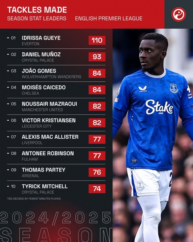 3月18日訊 國家隊比賽周到來,英超也暫時告一段落,squakwa統計了本賽季英超成功搶斷情況,蓋耶獨自領跑。