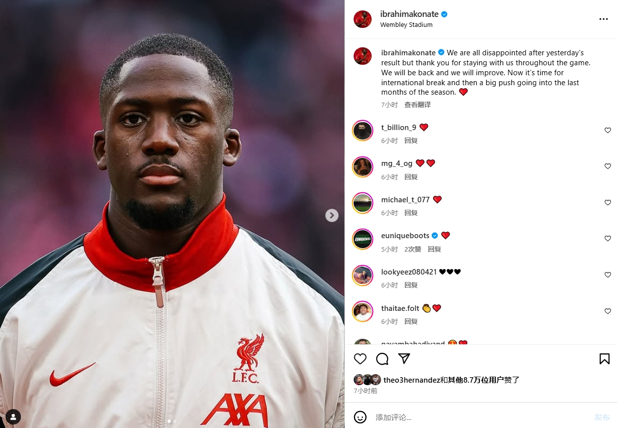 3月18日訊 利物浦在聯(lián)賽杯決賽中1-2不敵紐卡,無(wú)緣冠軍。利物浦中衛(wèi)科納特在社交媒體上寫(xiě)道:“昨天的比賽結(jié)果讓我們都很失望,但感謝大家整場(chǎng)比賽都與我們同在。”“我們會(huì)回來(lái)的,我們將做出改進(jìn)。現(xiàn)在是國(guó)際比賽日,接下來(lái)就是賽季最后幾個(gè)月的大沖刺了。” 本文標(biāo)簽: 足球 英超 利物浦