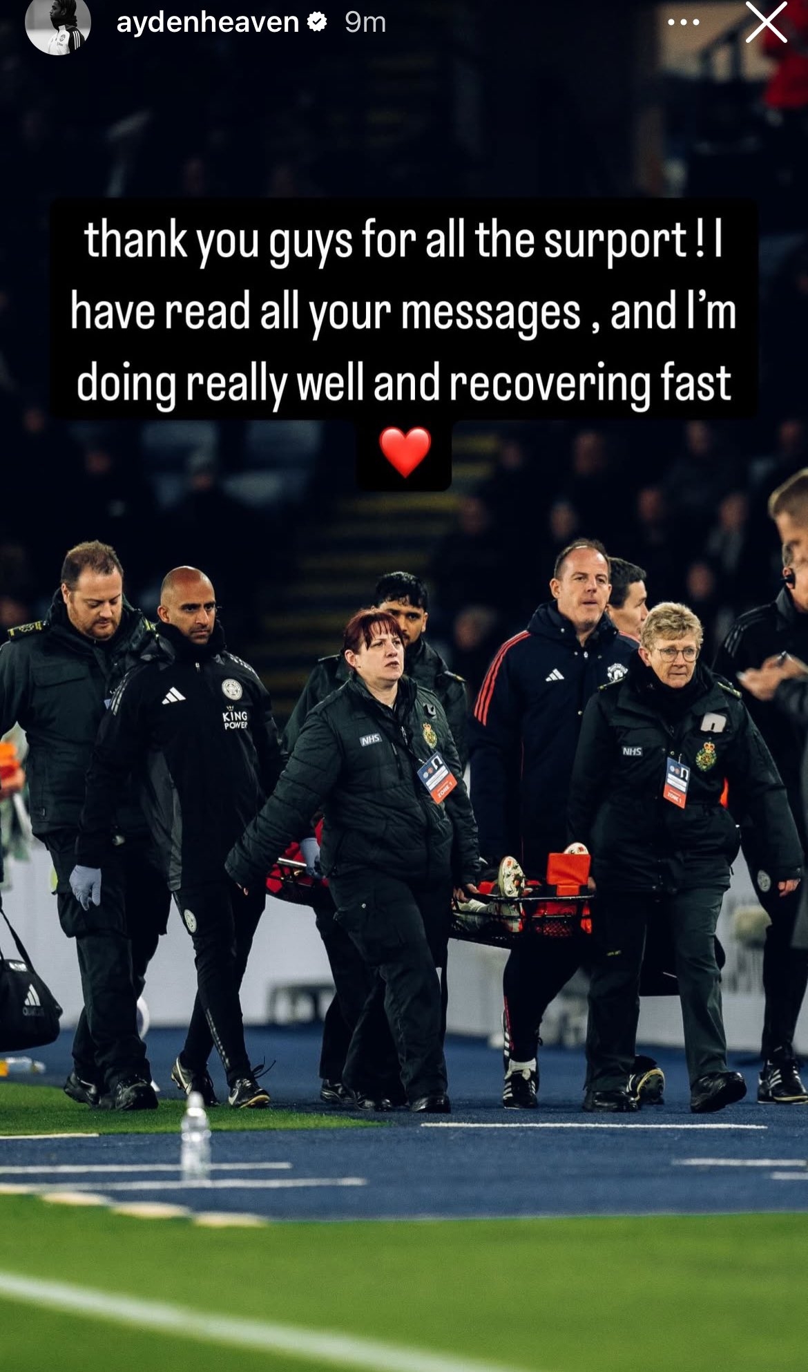 3月19日訊 曼聯在本輪英超3-0客勝萊斯特城,18歲中衛海文首發因傷被擔架抬離球場。他也在今日通過社媒曬出自己被擔架抬出球場的照片,并配文:“感謝球迷們的所有支持!我已經讀過了你們發來的消息,我也會努力盡快康復!”根據此前消息,海文沒有被送往醫院,他在右腳穿著保護靴的情況下離開體育場并登上球隊大巴,但不需要拐杖。目前還沒有他傷情的具體消息。 本文標簽: 足球 英超 曼聯