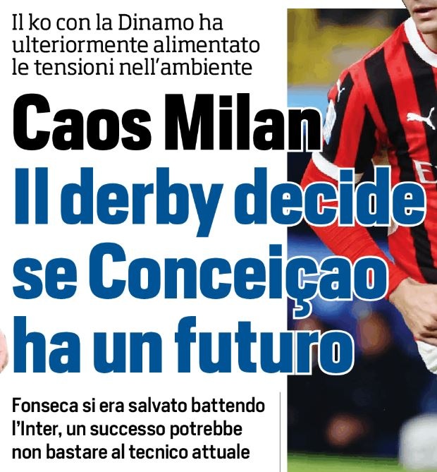 輸給薩格勒布迪納摩的比賽引爆了這場(chǎng)危機(jī),現(xiàn)在米蘭陷入了全面的混亂,每個(gè)人都開始受到評(píng)估。就跟往常一樣,教練在這種情況下是最危險(xiǎn)的人,雖然孔塞桑上任僅一個(gè)月就奪得了一座冠軍獎(jiǎng)杯,但他現(xiàn)在面臨的風(fēng)險(xiǎn)最大。