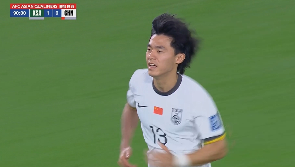 03月21日訊 國足vs沙特,國足第90分鐘換人,胡荷韜登場換下謝文能。