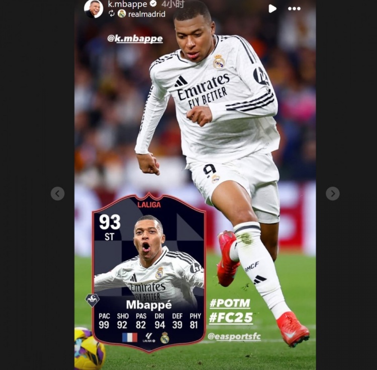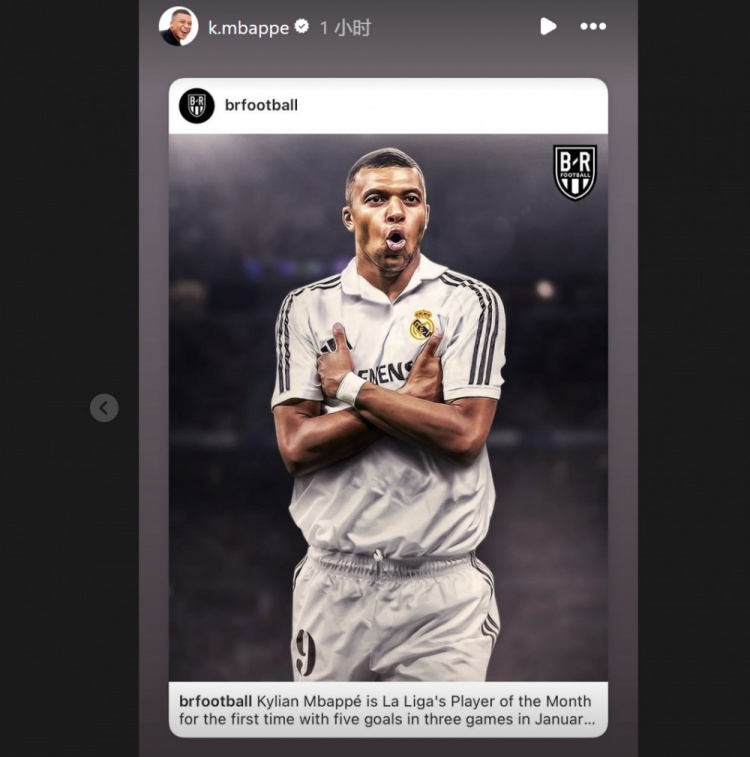2月1日訊 西甲官方在今日公布了1月最佳球員,皇馬前鋒姆巴佩當選。姆巴佩在1月為皇馬出戰3場西甲打進5球,這也是他首次獲評西甲月最佳球員。姆巴佩也通過社媒轉發了相關動態作為紀念,并配上“月最佳球員”的縮寫。 本文標簽: 足球 西甲 皇家馬德里 姆巴佩