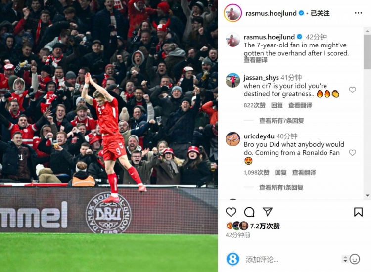 3月21日訊 歐國聯1/4決賽首回合比賽,霍伊倫破門,幫助丹麥主場1-0擊敗葡萄牙。霍伊倫進球后做出C羅標志性的siu慶祝動作,賽后他表示自己從2009年起就是C羅的球迷,并沒有冒犯C羅的意思。霍伊倫在社交媒體上曬出自己慶祝的照片,配文:“藏在我心里的那個7歲小球迷,進球后可能接管了我?!?/p> 本文標簽: 足球 C羅 英超 曼聯 丹麥 葡萄牙