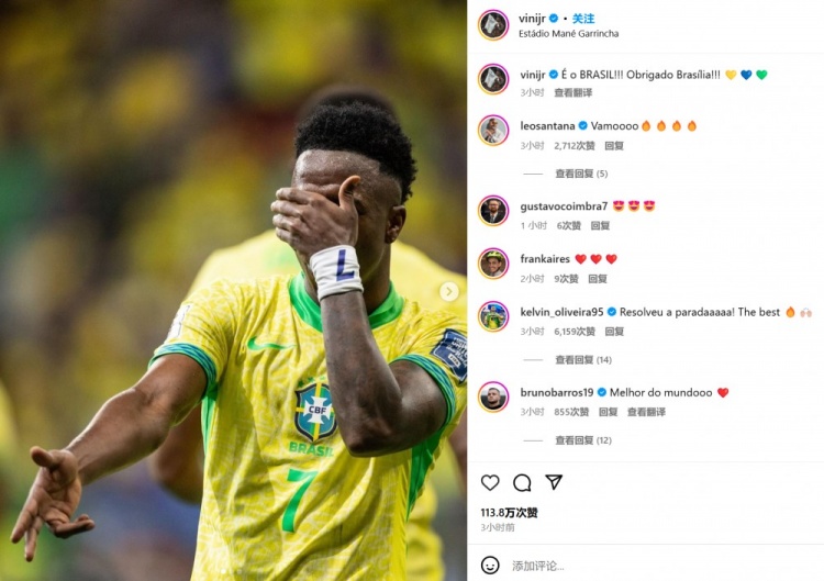 3月22日訊 巴西在本輪世預賽坐鎮首都巴西利亞2-1絕殺哥倫比亞,維尼修斯表現出色獨造兩球。第3分鐘,維尼修斯反擊殺入禁區后被撞倒,主裁判果斷給了點球。拉菲尼亞點射命中。第90+8分鐘,維尼修斯前場左側突然起腳轟出一腳世界波完成絕殺。維尼修斯也在賽后通過社媒曬出自己的慶祝照,并配文:“這就是巴西!!!感謝巴西利亞!!!” 本文標簽: 足球 西甲 皇家馬德里 國家隊 巴西 哥倫比亞
