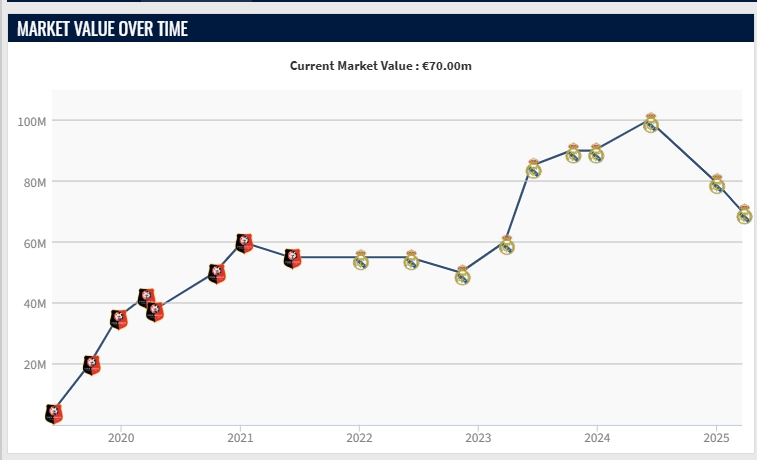 昨日德轉更新西甲球員身價,22歲的皇馬中場卡馬文加再降1000萬,最新身價為7000萬歐。去年6月,卡馬文加巔峰身價達到1億歐。但他本賽季頻繁受到傷病困擾,出場和狀態也深受影響。 本文標簽: 足球 西甲 皇家馬德里