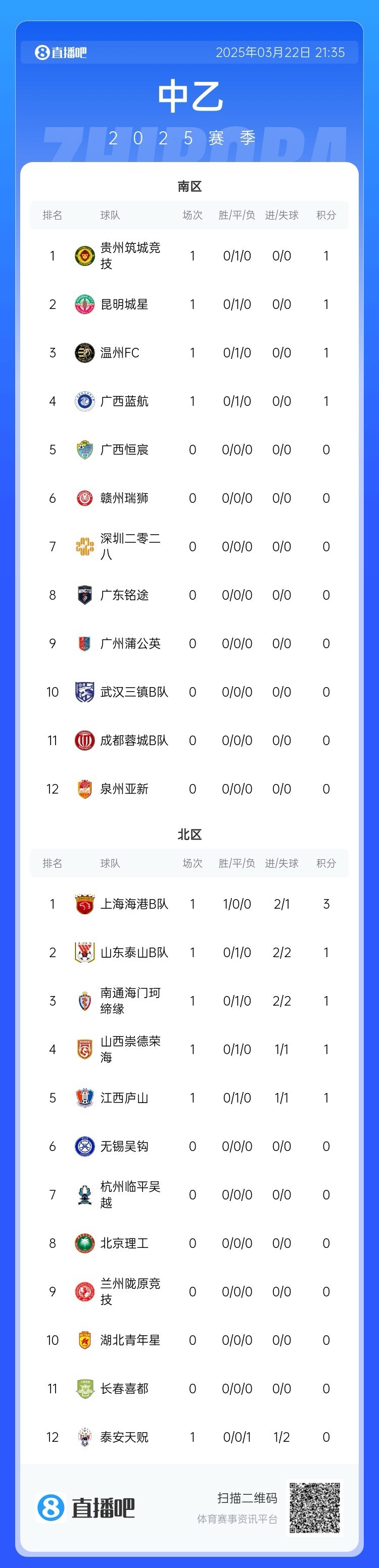3月22日訊 2025賽季中乙聯賽今天拉開帷幕,在首日進行的5場比賽中,海港B隊擊敗泰安天貺,泰山B隊2-2海門珂締緣。