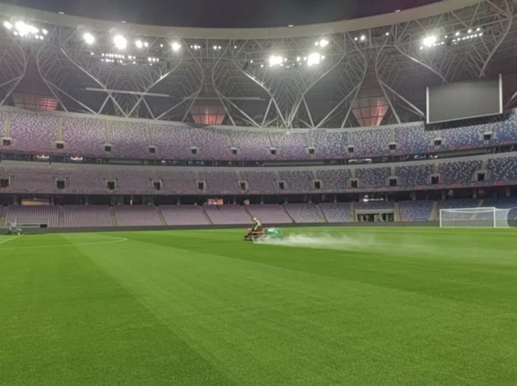 草坪養護專家李龍保介紹,根據本階段世預賽競賽要求,整個球場的草坪修剪高度要嚴格控制在25mm,草坪的基礎平整度極為嚴格,3米內的高差必須控制在5mm以內,整個場地的坡度差要在千分之三以內。“我們用的高精度北斗導航精細平地機控制平整度,能夠根據導航自動找平調平種植層平整。”