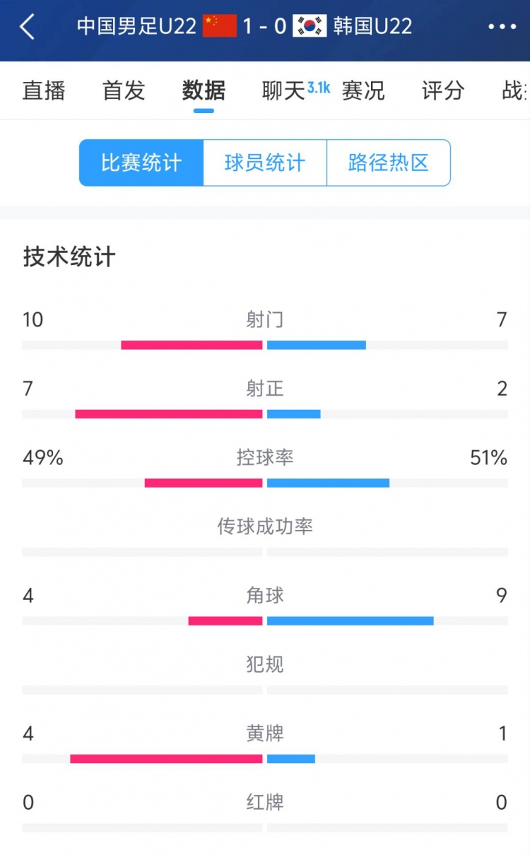 3月23日訊 鹽城邀請賽,U22國足1-0絕殺韓國隊。本場數據方面,中國隊控球率49%,韓國51%。射門方面,中國隊10次射門7次射正,韓國隊7次射門2次射正。角球數方面,中國隊4次,韓國隊9次。黃牌方面,中國隊4張,韓國隊1張。 本文標簽: 足球 中超 中國足球