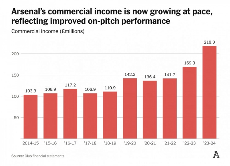 至于商業(yè)收入的激增,則是阿森納近年來最令人欣喜的部分。