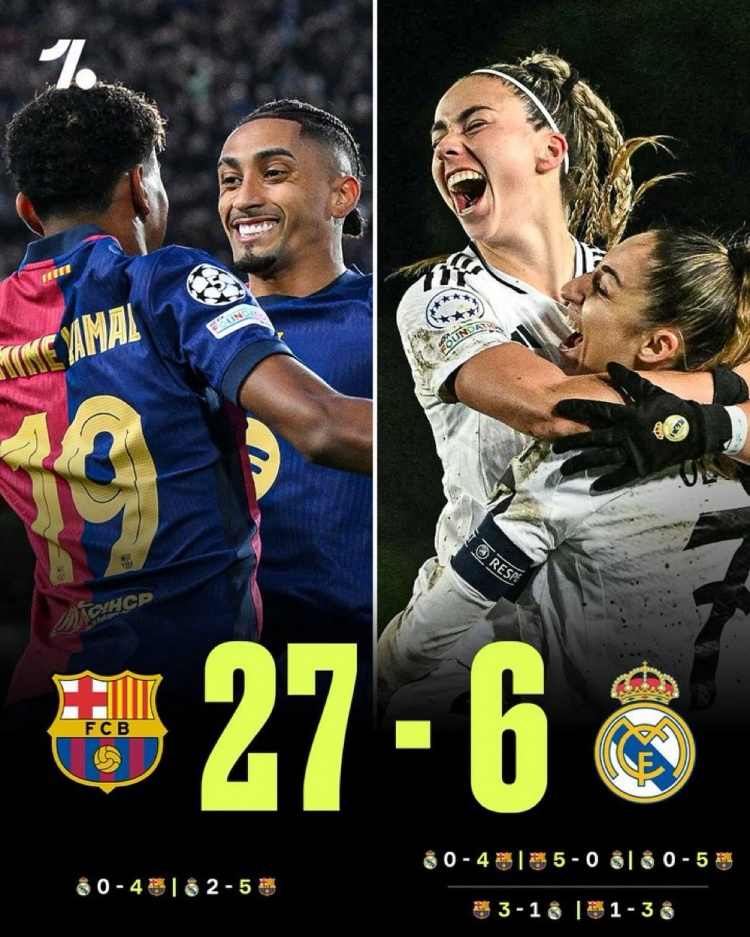 這是巴薩男女足本賽季首次在國家德比中輸球,此前6場比賽中巴薩取得全勝。在這7場比賽里,巴薩狂轟27球,只丟了6球。