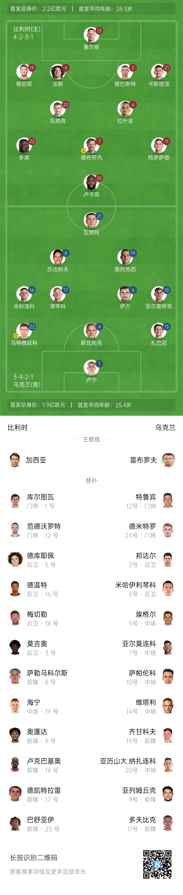 烏克蘭首發(fā):1-盧寧、13-扎巴尼、4-斯瓦托克、22-馬特維延科、17-津琴科、18-亞爾莫柳克、6-伊萬-卡柳日尼、16-米科連科、8-蘇達科夫、19-奧列克西、21-瓦納特