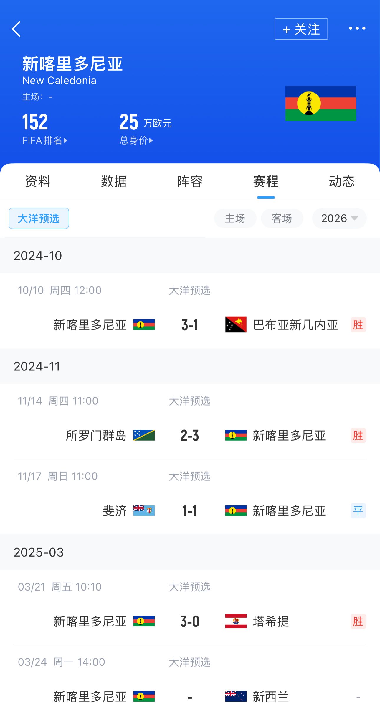 新喀里多尼亞FIFA排名第152,陣容身價(jià)25萬(wàn)歐,不及新西蘭的百分之一。