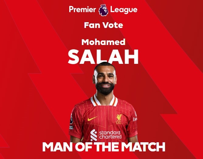 梅開(kāi)二度!英超官方:薩拉赫當(dāng)選本場(chǎng)球迷票選全場(chǎng)最佳