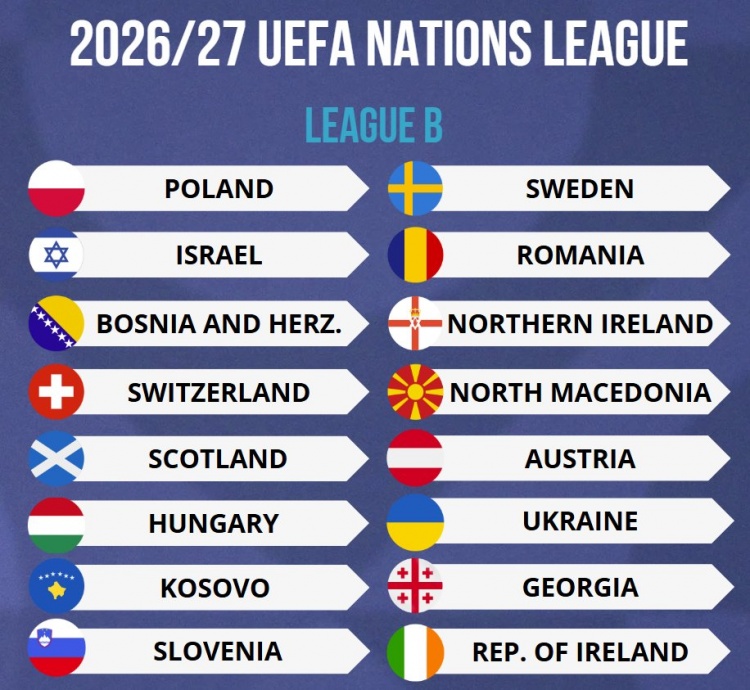 3月24日訊 歐國聯升級賽已經全部結束,2026-27賽季將征戰B級別聯賽的代表隊名單也已經全部出爐。2026-27賽季歐國聯B級別代表隊名單↓波蘭、瑞典、以色列、羅馬尼亞、波黑、北愛爾蘭、瑞士、北馬其頓、蘇格蘭、奧地利、匈牙利、烏克蘭、科索沃、格魯吉亞、斯洛文尼亞、愛爾蘭 本文標簽: 足球 格魯吉亞 斯洛文尼亞 奧地利 匈牙利 愛爾蘭 北愛爾蘭 烏克蘭 羅馬尼亞 瑞士 波蘭