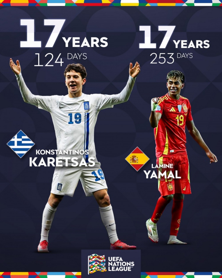 歐足聯(lián)也發(fā)推稱贊了這兩名小將,表示目前歐國(guó)聯(lián)最年輕的進(jìn)球球員是17歲124天的希臘小將卡雷查斯,17歲253天的亞馬爾排在第二。