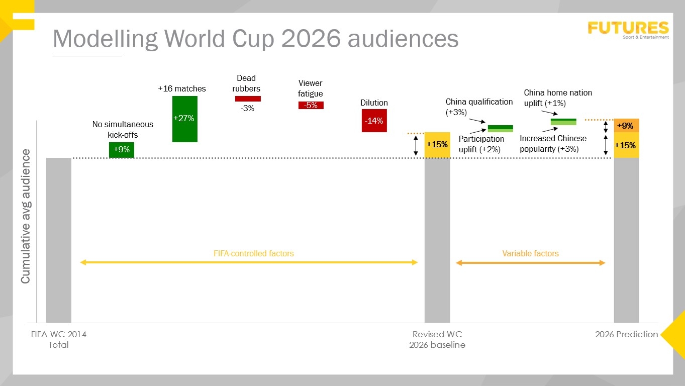 機構Futures sport曾在2017年對2026世界杯的全球收視率做出預測報告,其中談到了中國隊若晉級世界杯所能帶來的潛在影響。