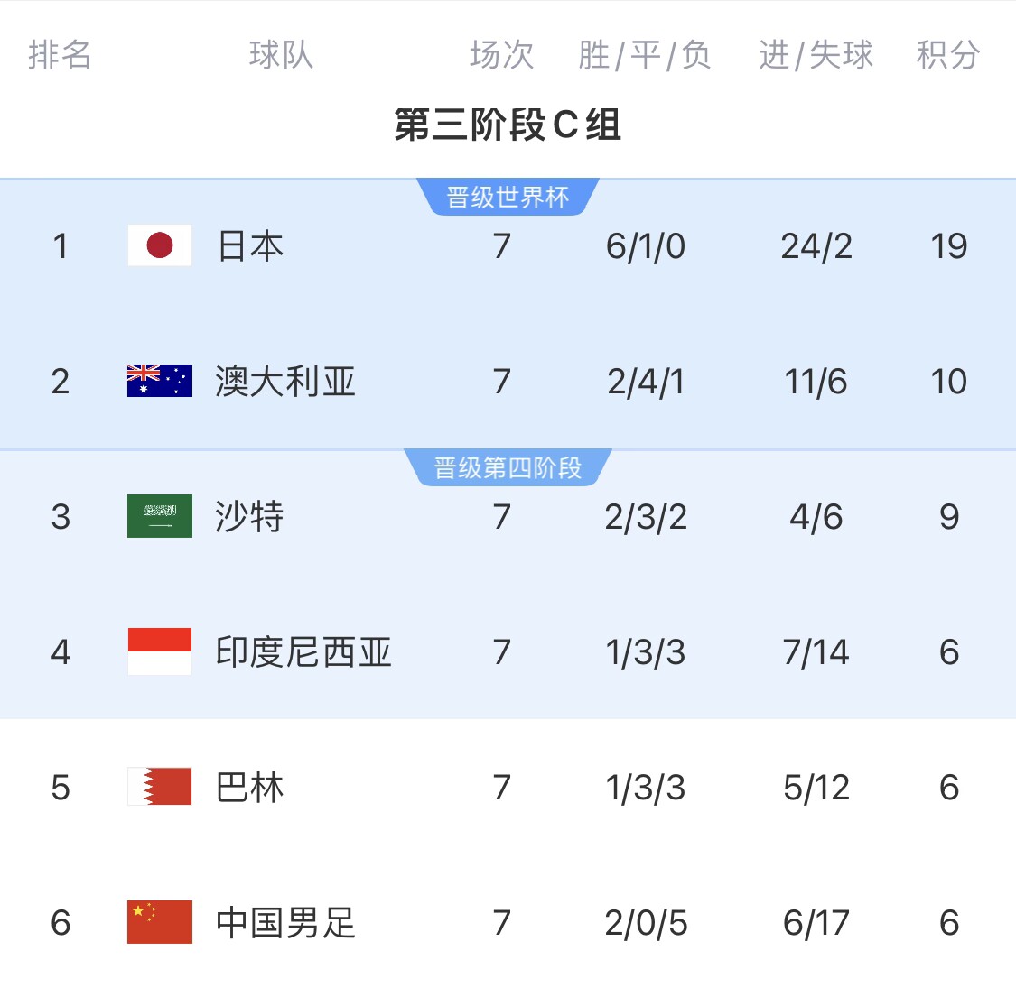(注:澳大利亞如果戰(zhàn)勝中國,積分13,沙特輸給日本積分9;接下來的兩場哪怕澳洲也輸給日本,末輪只要對沙特保持不敗即可直通世界杯。在沙特保持第3的情況下,印尼、巴林誰拿分,都會卡住國足上升爭四的路線)