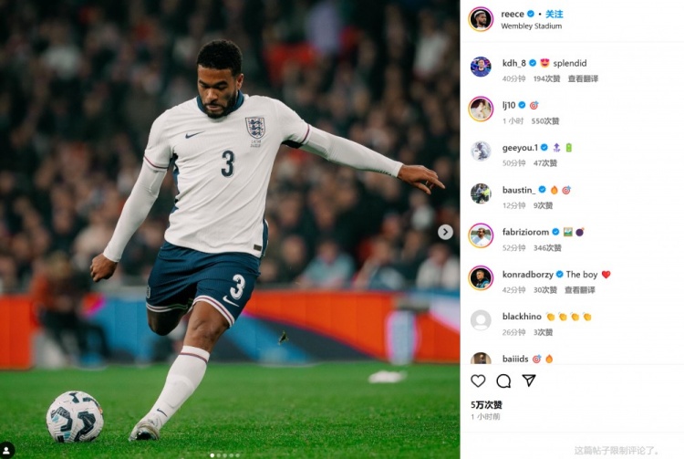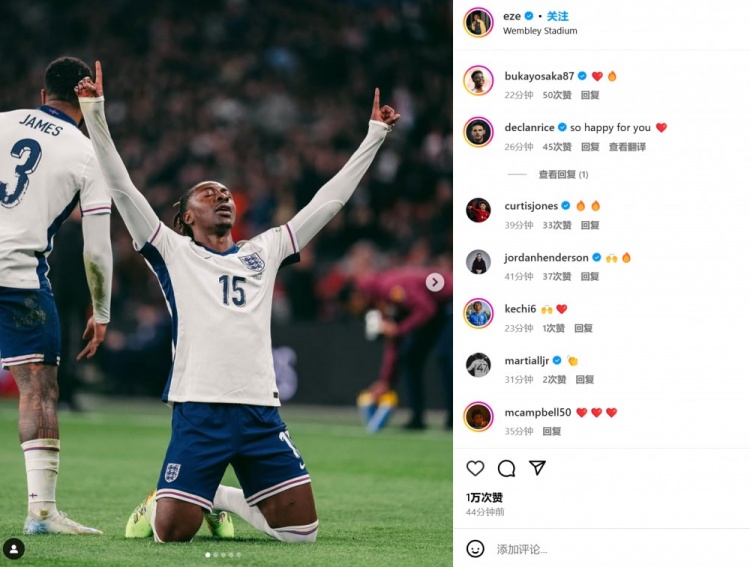 3月25日訊 英格蘭在本輪世預賽3-0完勝拉脫維亞,里斯-詹姆斯直接任意球破門,埃澤替補登場憑借個人能力建功。第38分鐘,英格蘭隊禁區前右側的任意球,里斯-詹姆斯操刀,右腳打出一記精彩的圓月彎刀直掛死角。第76分鐘,埃澤左路得球后左晃右突殺進禁區,內切右腳打門,皮球擊中切爾諾莫迪斯后變線破門。兩人也都在賽后通過社媒曬出自己的比賽照,但并未附加文字內容。賴斯和霍爾等隊友紛紛送上鼓勵:“為你感到高興”、“棒極了”… 本文標簽: 足球 英超 切爾西 水晶宮 國家隊 英格蘭