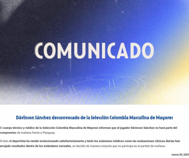 3月25日訊 哥倫比亞國家隊(duì)官方確認(rèn),達(dá)文森-桑切斯退出本期國家隊(duì)集訓(xùn)。