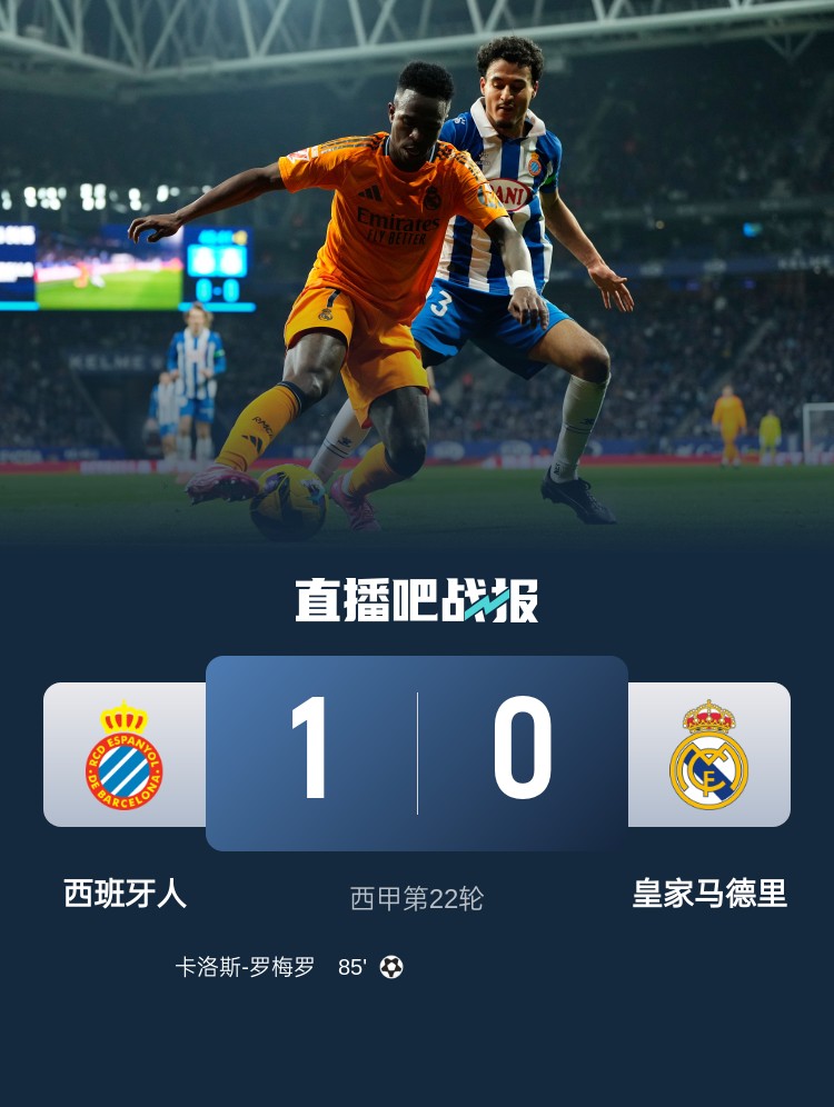 羅梅羅第85分鐘絕殺,皇馬0-1西班牙人,只有1分領跑積分榜。