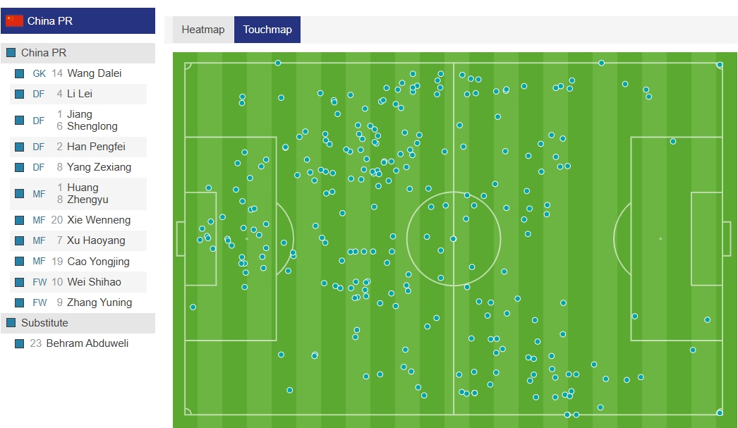 03月25日訊 世預賽亞洲區第三階段C組第8輪,中國vs澳大利亞。比賽上半場國足在主場陷入全面被動,根據觸球統計圖顯示,國足半場只在澳大利亞禁區內觸球3次,熱區圖顯示國足很難壓過半場。【半場數據】國足射門2-5,射正0-2 本文標簽: 足球 國家隊 中國男足 中國足球 中超