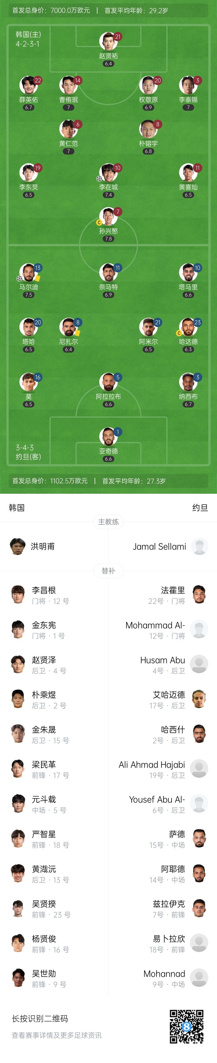 3月25日訊 18強賽B組第8輪,韓國坐鎮主場首爾世界杯體育場迎戰約旦。上半場,孫興慜角球助攻李在城閃擊破門,馬爾迪扳平。半場戰罷,韓國1-1約旦。