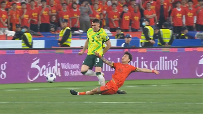03月25日訊 國足vs澳大利亞第13分鐘,謝文能鏟倒米勒,累計兩張黃牌停賽,無緣出戰6月客戰印尼的比賽。
