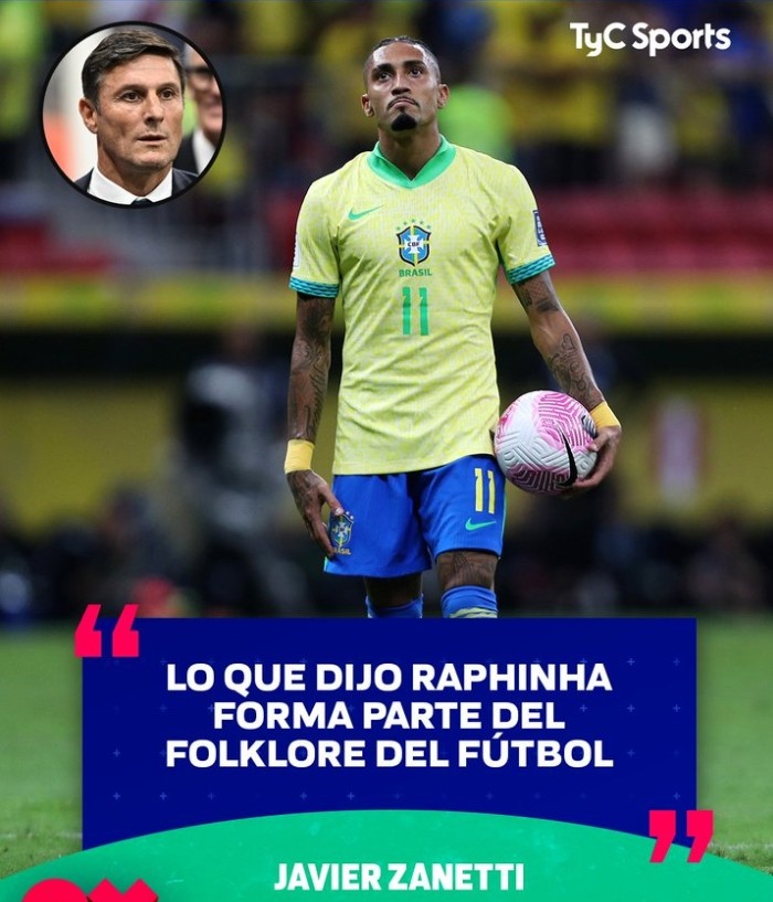3月26日訊 薩內蒂接受TyC采訪,回應了此前拉菲尼亞對阿根廷的言論。北京時間3月26日上午8點,世預賽南美區第14輪,巴西將在客場對陣阿根廷。拉菲尼亞在參加羅馬里奧的節目時放出豪言,要“狠狠地干阿根廷”,并且許諾自己會進球。賽前,薩內蒂接受采訪回應了拉菲尼亞的言論,并表示:“這是足球文化的一部分?!?/p> 本文標簽: 足球 巴西 阿根廷