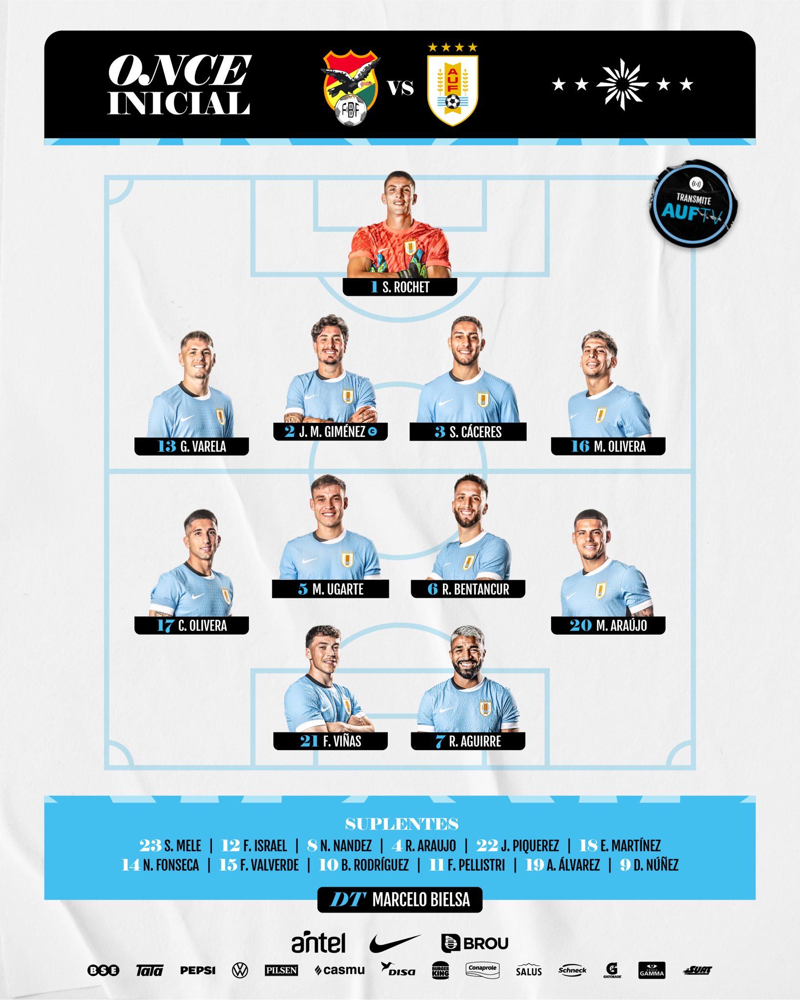 03月26日訊 世預(yù)賽南美區(qū)第14輪,烏拉圭客戰(zhàn)玻利維亞,賽前首發(fā)公布。