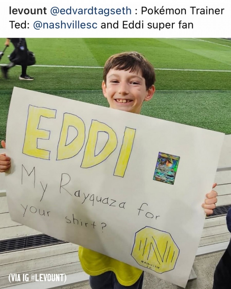 3月26日訊 美職聯球隊納什維爾SC的官方Instagram最近發文,表示一位小球迷用寶可夢卡牌換到了球員的球衣。