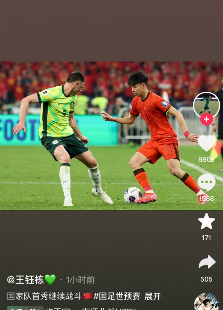 3月26日訊 今天,王鈺棟更新社媒,曬出了自己國足首秀的照片。昨晚國足主場0-2不敵澳大利亞的比賽中,王鈺棟在下半場替補出場,兩次成功過人位居全場之首。王鈺棟在社媒曬出比賽照片并為此配文自勉寫道:“國家隊首秀,繼續戰斗!”他在U20國足的隊友蒯紀聞留言“太愛你了兄弟”,王鈺棟則調侃回復“(國家隊)等你了寶貝”。 本文標簽: 足球 中超 中國足球 中國男足 浙江