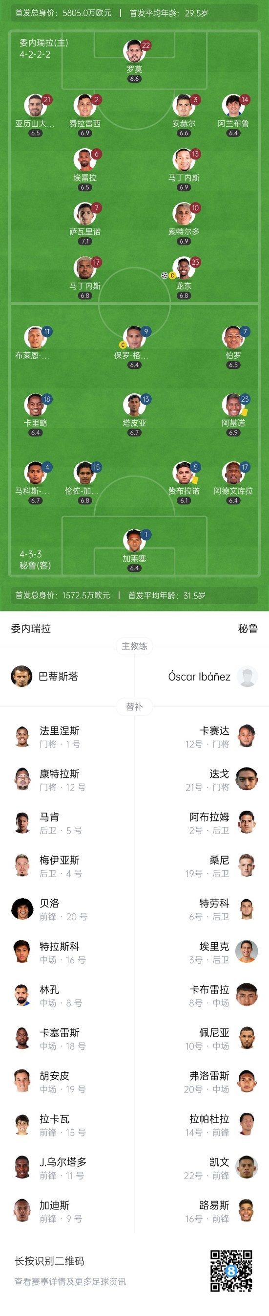 第40分鐘,委內瑞拉獲得點球!馬丁內斯禁區被放倒裁判判罰點球,龍東主罰點球破門,委內瑞拉1-0秘魯。↓