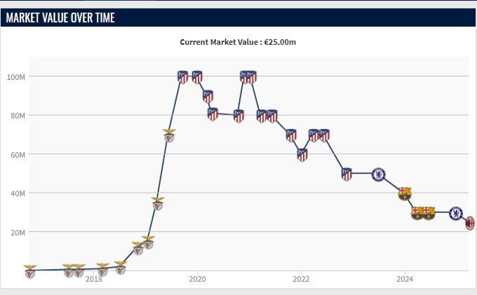 03月26日訊 昨日意甲身價更新,25歲的菲利克斯身價降至2500萬歐。今年冬窗菲利克斯租借至米蘭,菲利克斯目前代表米蘭出場10次,打進1球(意大利杯)送出1次助攻(意甲)。菲利克斯2500萬歐的身價也是2019年之后的新低,菲利克斯2019年巔峰身價曾達1億歐,在2021年之后身價一直在下降。 本文標簽: 足球 意甲 AC米蘭