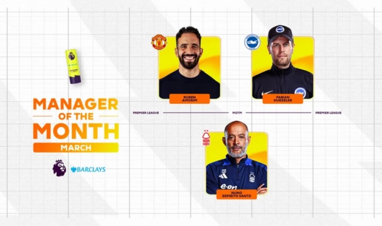 3月27日訊 英超官方公布3月最佳教練候選,曼聯主帥阿莫林、布萊頓主帥赫爾澤勒、諾丁漢森林主帥努諾三人獲提名。英超3月最佳教練候選:阿莫林(曼聯):2場1勝1平,凈勝球+3赫爾澤勒(布萊頓):2場1勝1平,凈勝球+1努諾(諾丁漢森林):2場2勝,凈勝球+3 本文標簽: 足球 英超 曼聯 諾丁漢森林 布萊頓
