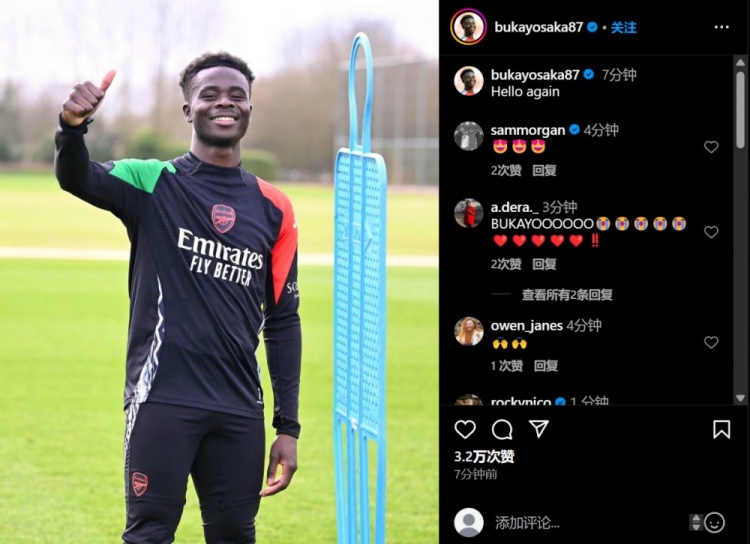 3月28日訊 阿森納邊鋒薩卡更新社媒,曬出自己身穿訓(xùn)練服照片,配文:又見面了。薩卡自去年12月因腿筋傷勢傷缺至今,據(jù)此前報(bào)道,他接近復(fù)出。受傷前,薩卡本賽季在各項(xiàng)賽事出戰(zhàn)了24場比賽,貢獻(xiàn)9球13助攻。 本文標(biāo)簽: 足球 英超 阿森納